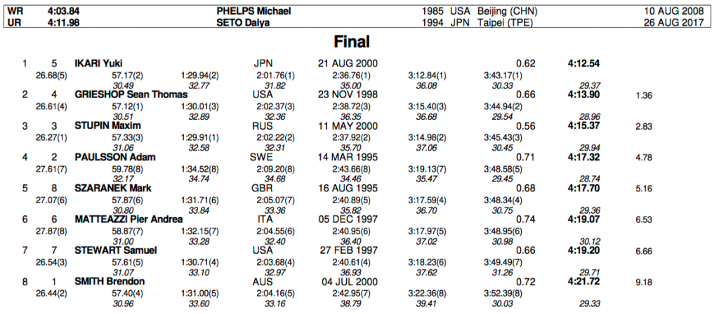 Taking first by over a second was Japan’s Yuki Ikari with a 4:12.54.