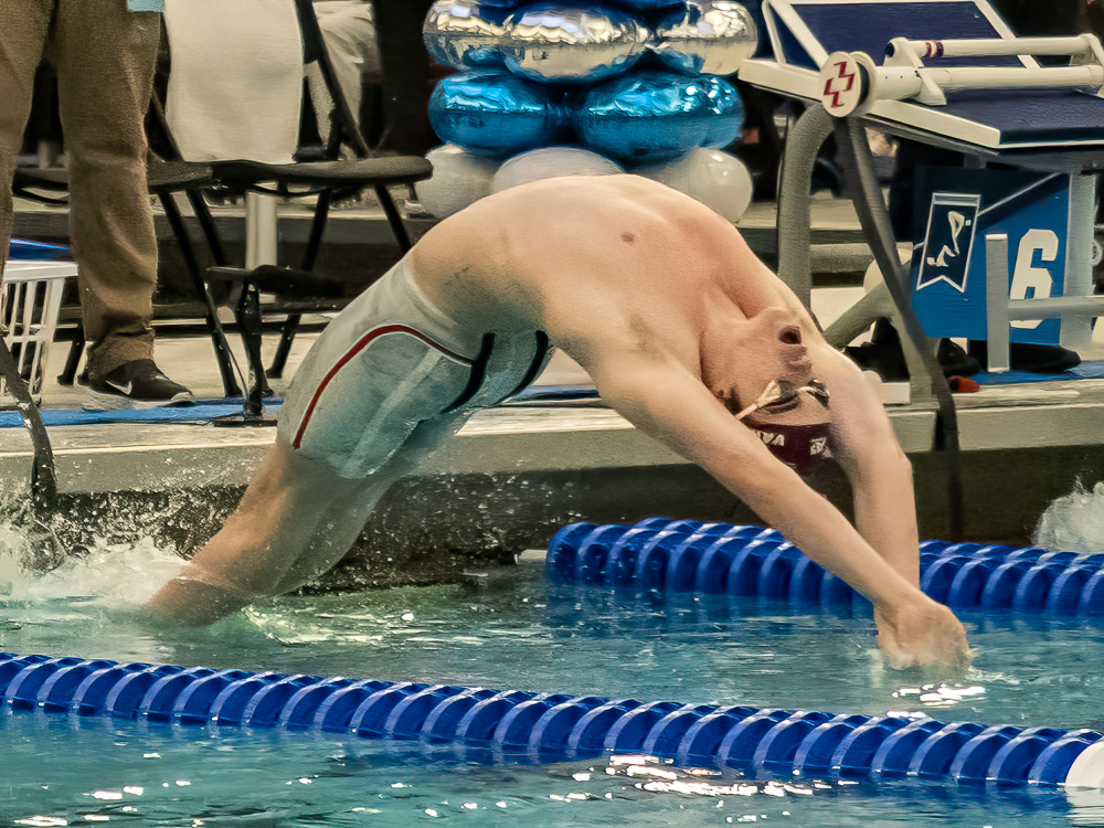 The comfort has translated to improvement. He owns SIU records in both backstroke events – 44.67 in the 100 and 1:39.73 in the 200. He was “a little disappointed” not to make the A final of the 100 back, entering with the seventh best time. His prelims swim of 45.17 landed 10th, outside the A final by .12 seconds. He made up for it by blasting a best time of 44.67 to boss the consolation final.