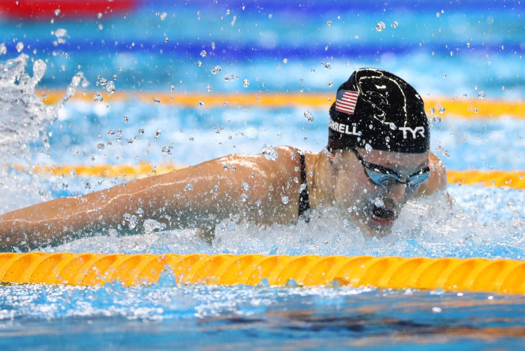 She swam a split of 55.4 to lead the United States to the gold medal to finish the meet on a high note.