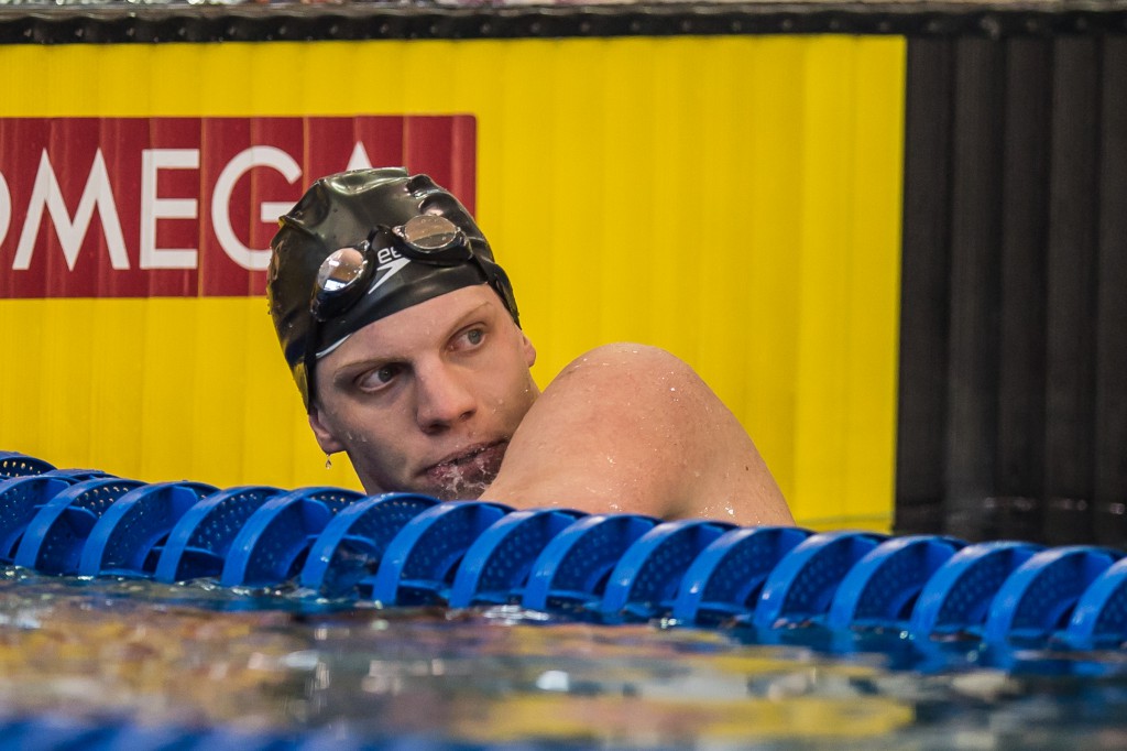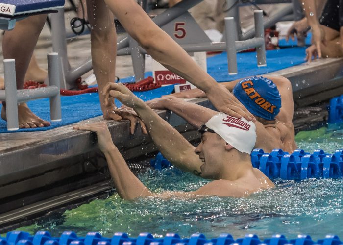 Not to be counted out was the Florida duo of Jan Switkowski and Mitch D’Arrigo. This was Switkowski’s first year with the Gators after spending one season at Virginia Tech in 2013-14. Switkowski had been a huge addition to the Gators and had been fourth in the 200 IM the day before. D’Arrigo was the runner-up in the 500, breaking 4:10, and both guys swam on Florida’s third-place 800 free relay that was under the old NCAA record in breaking 6:10. The only thing was, Switkowski was not in a seeded heat, so he had the challenge of trying to swim into the final from a slower heat.