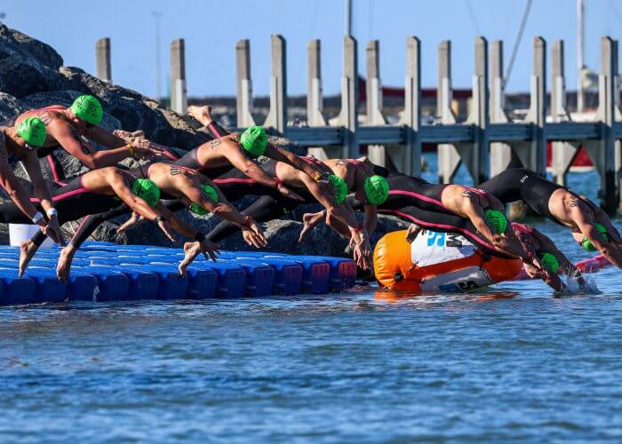 Australian Champs 3km Men’s Knockout starting Koombana Bay, WA Photo Courtesy Adam Crane (Swimming Australia)