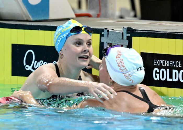 The women’s 800m freestyle saw Australia’s middle-distance star Lani Pallister (St Peters Western) clock the third fastest time in the world for 2026, behind superstars Katie Ledecky and Summer McIntosh, clocking her own third fastest time of 8:11.28 – destroying an international field which saw Brazil’s Maria Costa second in 8:23.98 and New Zealand’s former world champion over 400m and Olympic finalist Erika Fairweather third in 8:26.55.